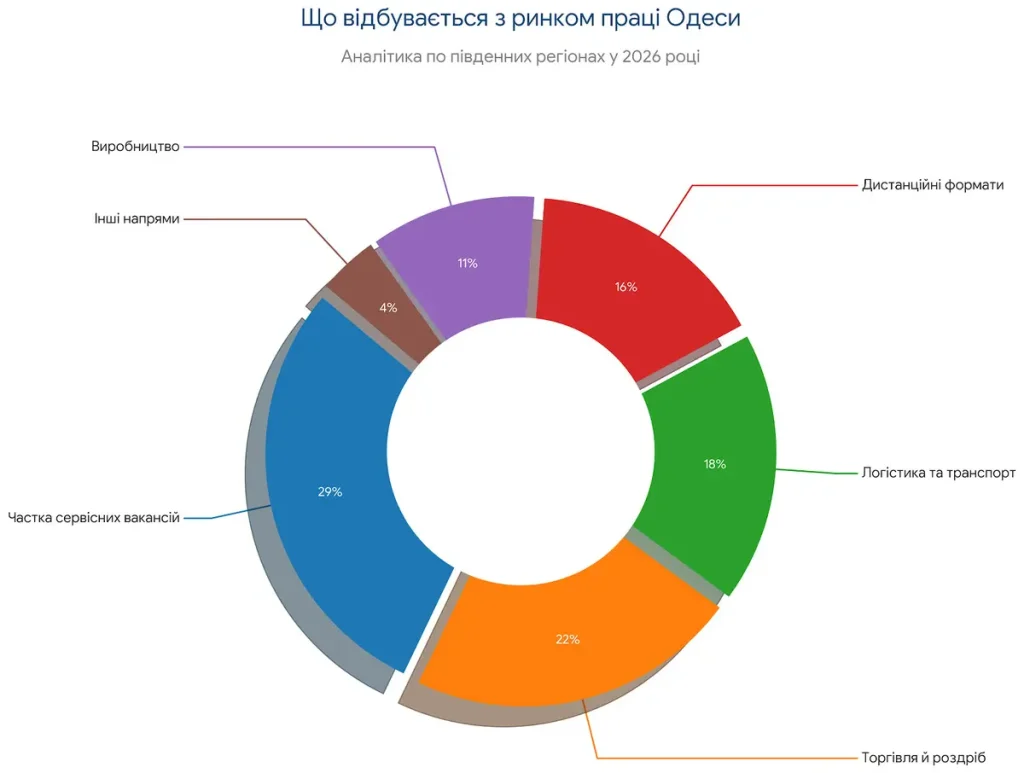 Для Одеси це означає поступове повернення економічної активності, але з акцентом на гнучкість. Туристичний сектор відновлюється повільніше, зате зростає попит у сфері онлайн-обслуговування, кол-центрів, e-commerce та портової логістики.