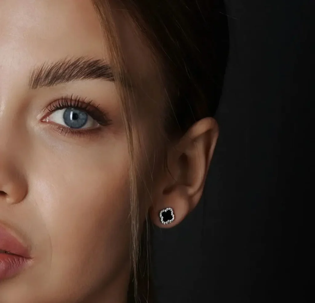 Є прикраси, які притягують погляд із першої секунди. Саме так працює ця модель. Контраст чорного елемента й блиску каміння створює ефект дорогого ювелірного акценту. Такі сережки часто носять із простими образами — біла сорочка, чорна сукня або базовий костюм.