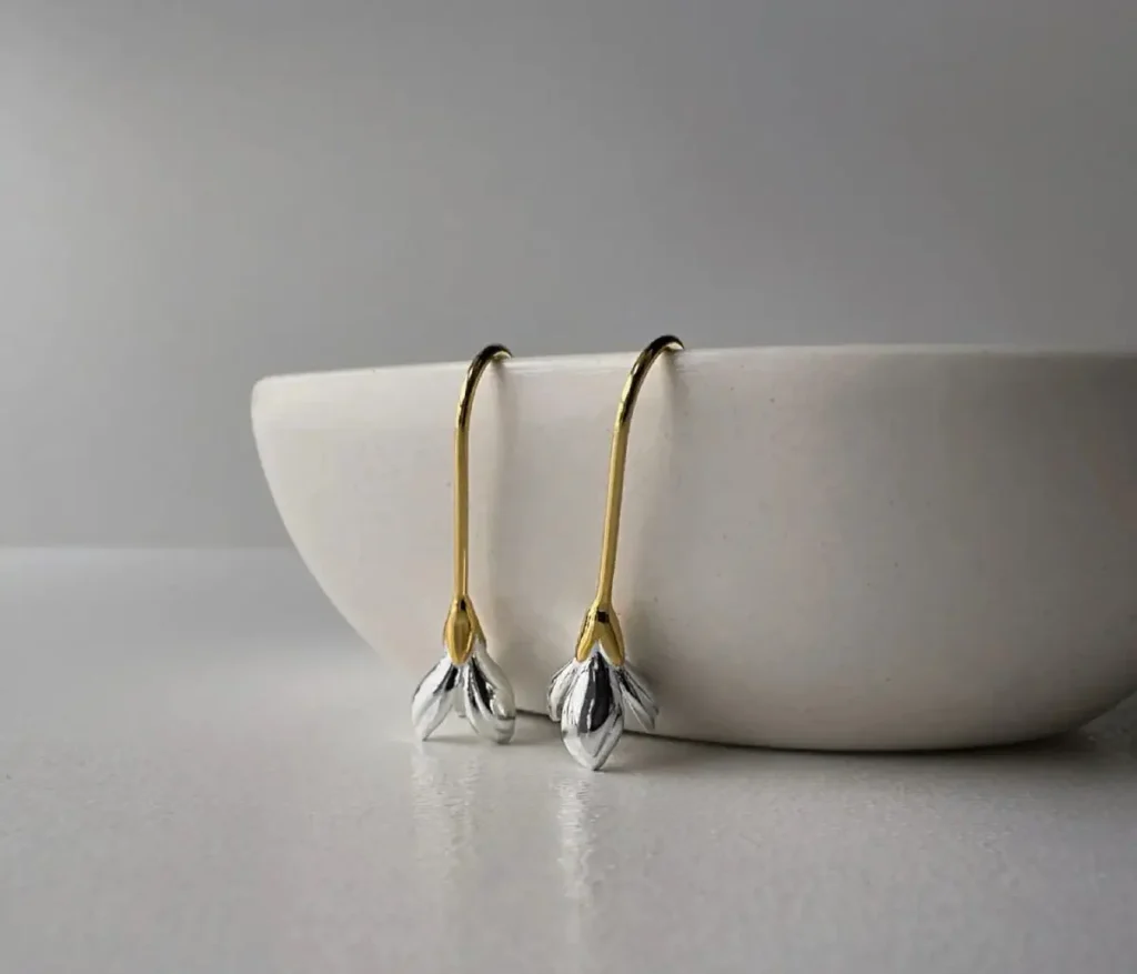 Це той випадок, коли прикраса виглядає майже як маленький витвір мистецтва. Ніжна форма квітки додає образу жіночності, але без надмірної декоративності. Такі сережки часто купують як символ весни або нового початку.