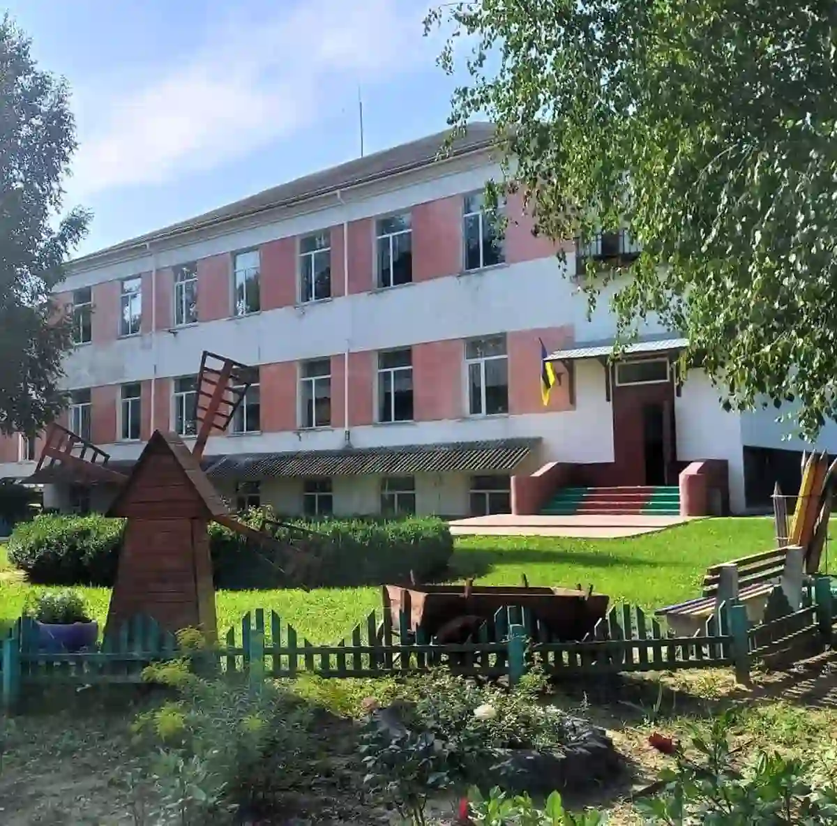 Шкільне подвір’я обладнане місцями для відпочинку, тут ростуть кущі та дерева, облаштовано живописний майданчик, і все це більше нагадує Софіївський парк, ніж звичайну територію біля школи.