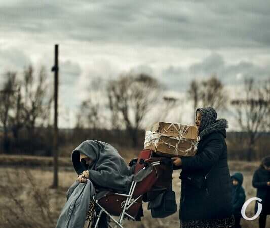 Літні люди, жінки й діти, їхні чоловіки та батьки. Улюблені і тому не кинуті домашні вихованці. Авта й дитячі візки… Тут змішалося все: страх, біль, розпач і надія: