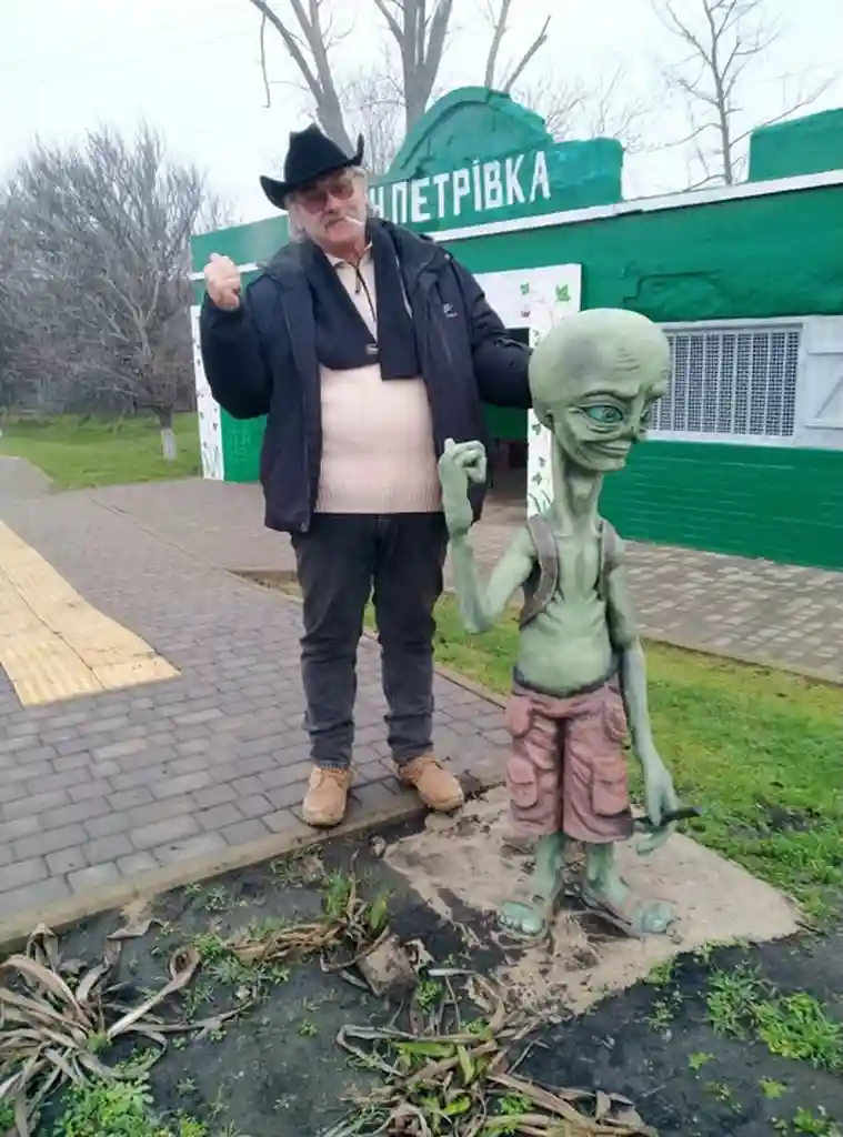 Художник мешкає у Новопетрівці. Тут, біля автобусної зупинки, постав прибулець Павло – автостопник по Галактиці, навпроти нього стоїть мультяшний Барт Сімпсон. А сусіднє село Антонюки «прихистило» анімаційного юного генія Джиммі Нейтрона.
