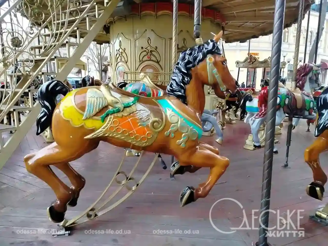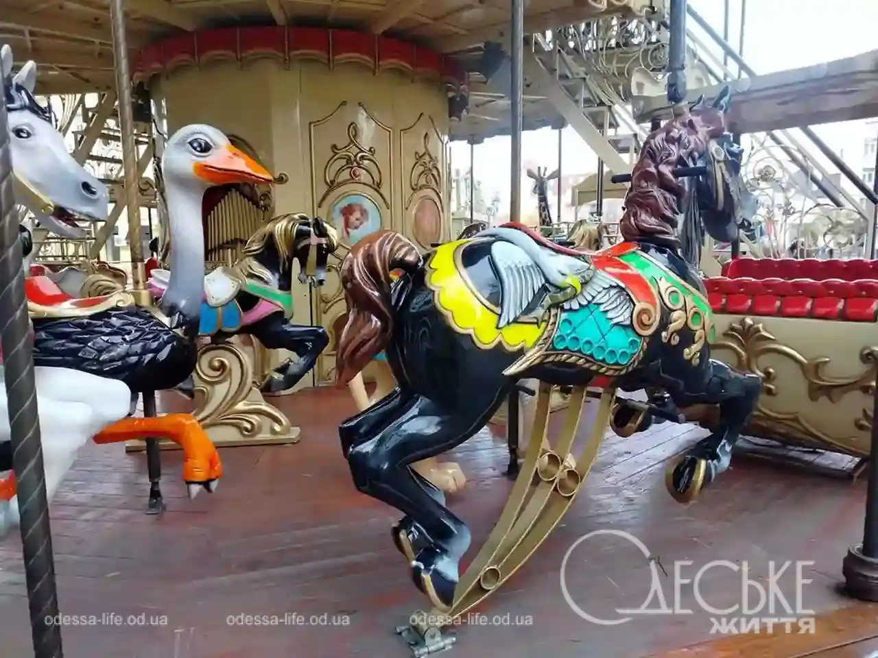 - На Грецькій площі в центрі Одеси встановили двоповерхову зимову карусель, яка стала новою святковою атракцією.