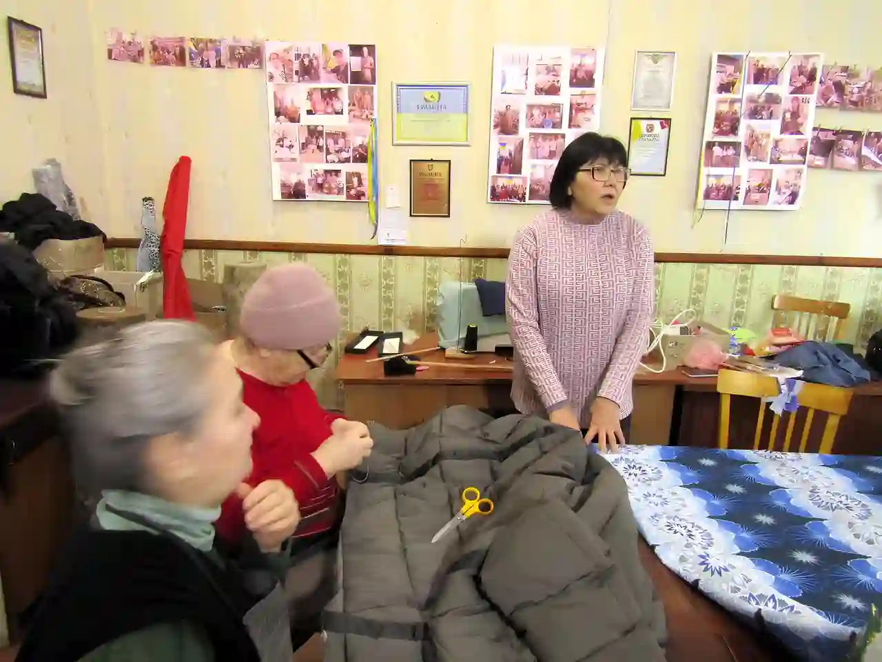 Зоя Шупарська у волонтерському центрі (праворуч, стоїть)