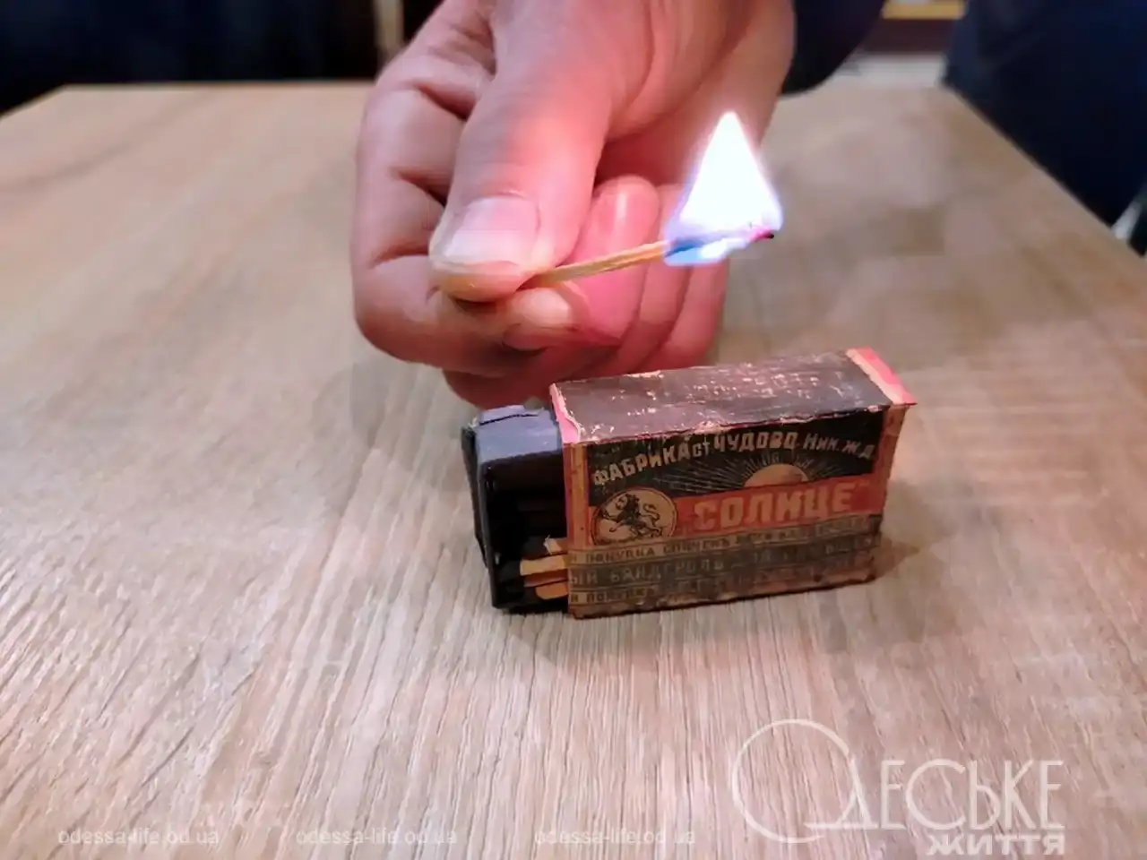 Поруч — дореволюційні безпечні сірники. Маленький, але революційний винахід середини XIX століття. Шведські винахідники Густав Паш і Йоган Лундстрьом винесли небезпечний фосфор із головки сірника на бокову поверхню коробка — і світ став трохи безпечнішим.