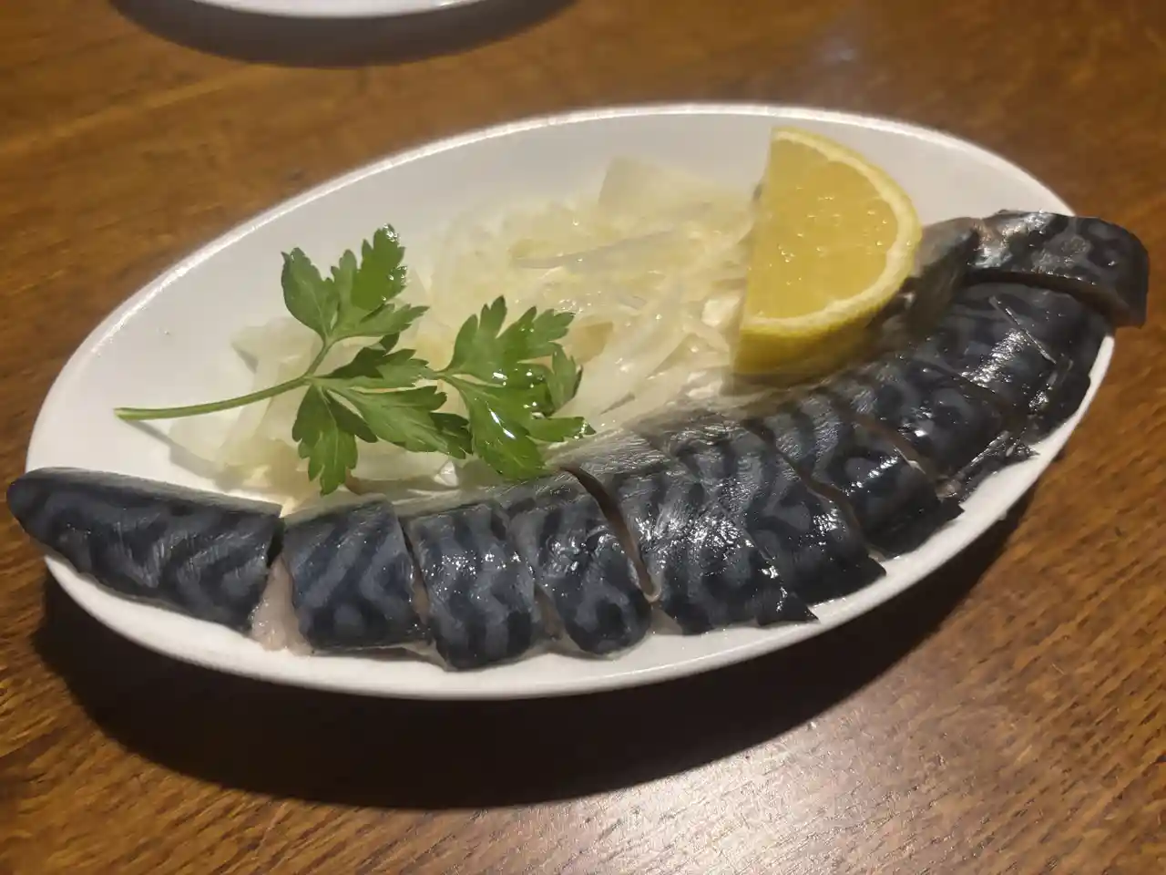Пиво та скумбрію принесли швидко. Порція – половина філе, нарізаного шматочками з маринованою цибулею. Темне пиво – Диканські вечори, виробництва Полтави я вперше бачу в продажі на розлив у барі, адже зараз зазвичай є дві крайнощі: або дуже смачний і дорогий крафт або не смачне і дороге пиво великих концернів. Це пиво було свіжим, доброї щільності та свіжим.