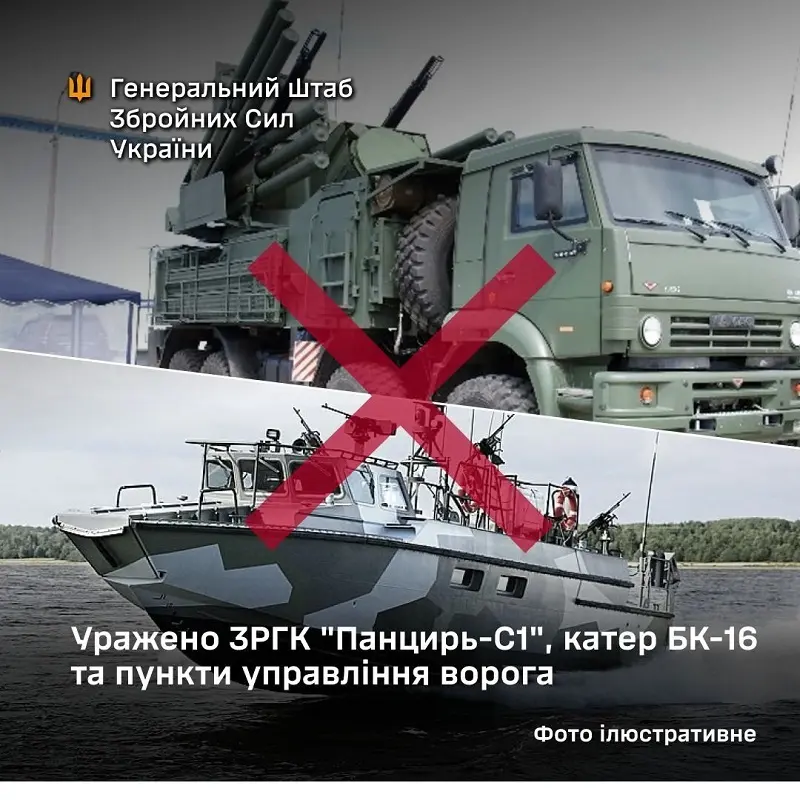Внаслідок удару уражено зенітно-ракетно-гарматний комплекс «Панцирь-С1» та десантний катер БК-16 у районі Новоозерного на території тимчасово окупованого Криму. Остаточні результати та масштаби збитків уточнюються.
