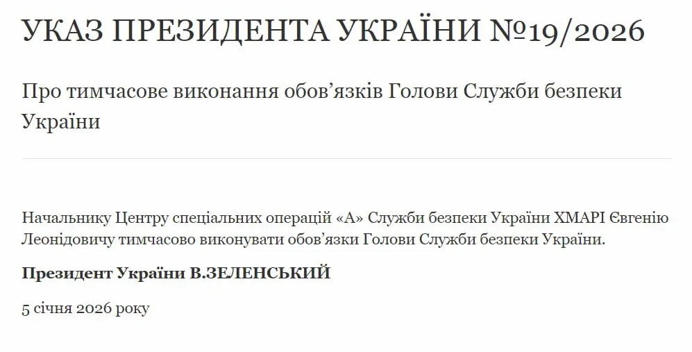 Згідно з указом Президента, тимчасово виконуючим обов’язки голови СБУ призначено генерал-майора Євгена Хмару, який нині керує підрозділом «Альфа».