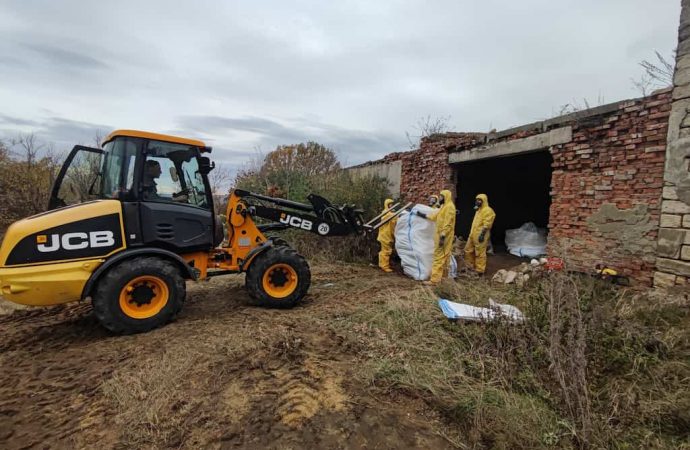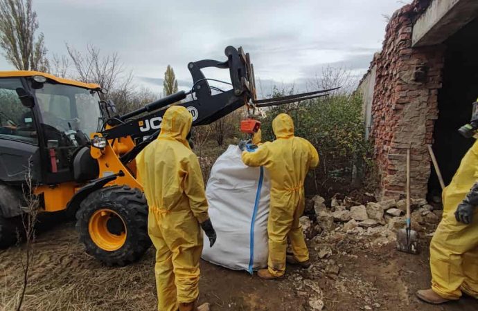 15 листопада робітники у спеціальному захисному одязі занурили отруйне сміття у біг-біги. Почергово працювали дві бригади з 4 робітників, у перерві захисні костюми та взуття обробляли спеціальним розчином для видалення токсичних залишків.