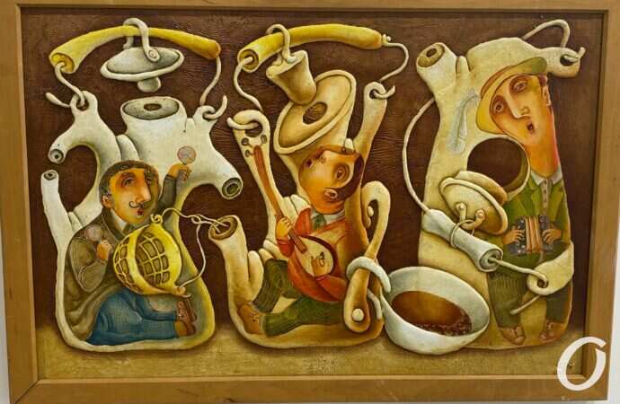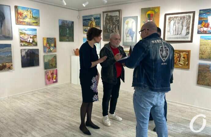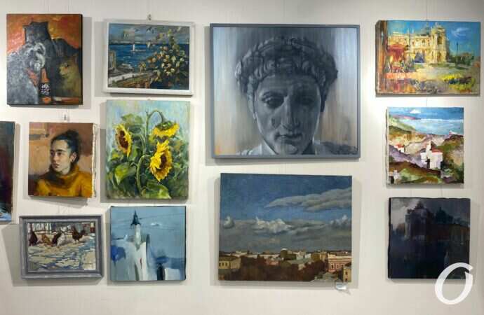А справа в тому, що на виставці зібрані роботи художників із Одеси, Києва, Франквська, Львова, Хмільницького та інших міст України, всього більше шістдесяти. Будь яку можна купити, адже це виставка-ярмарок.