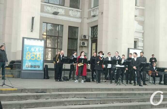 Крім того, біля вокзалу пройшов невеликий концерт: оркестр виконав кілька найпопулярніших українських та зарубіжних композицій.