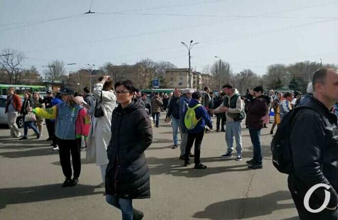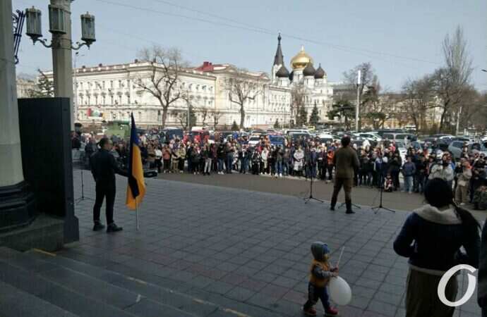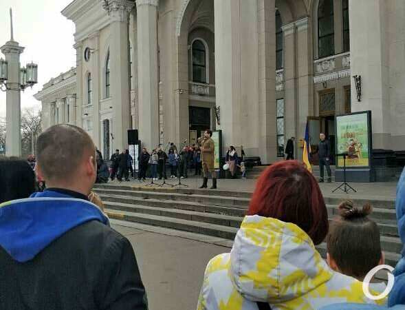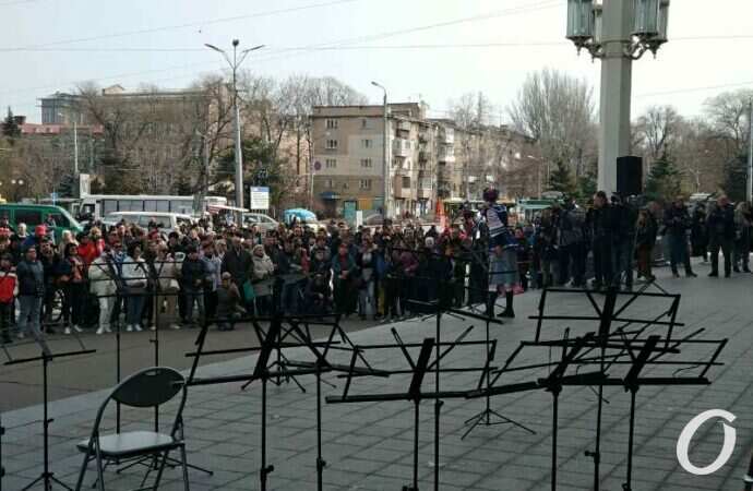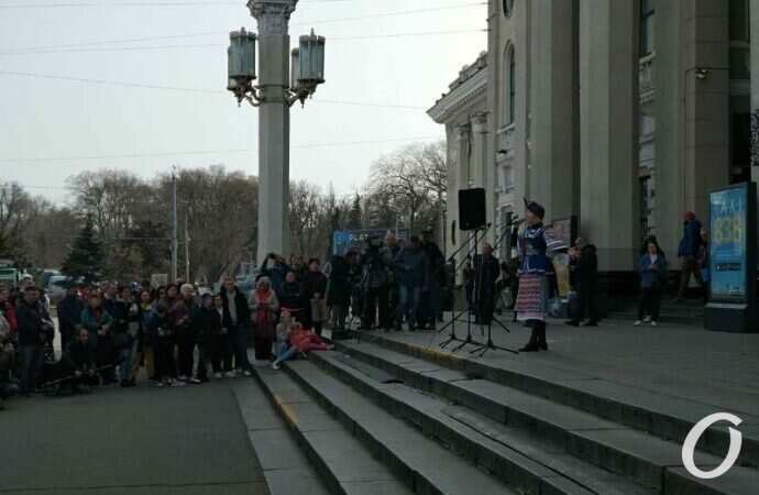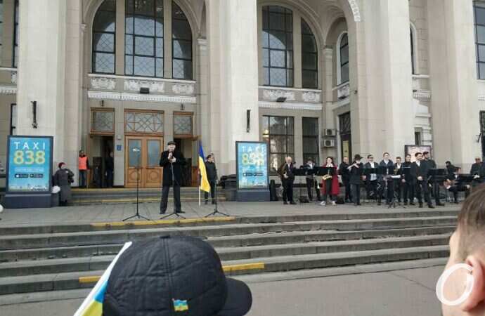 Вранці біля центрального входу до одеського залізничного вокзалу відбувся своєрідний флешмоб під назвою «Валіза – вокзал – росія». За задумом авторів дійства, українці (точніше, українки в національних костюмах) зустріли на вокзалі російського військового і… тут же вивели його назад.