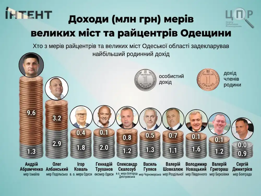 Центр публічних розслідувань спільно з виданням «Інтент» представили щорічний рейтинг доходів керівників райцентрів і великих міст Півдня України. Перше місце впевнено посів міський голова Ізмаїла Андрій Абрамченко.