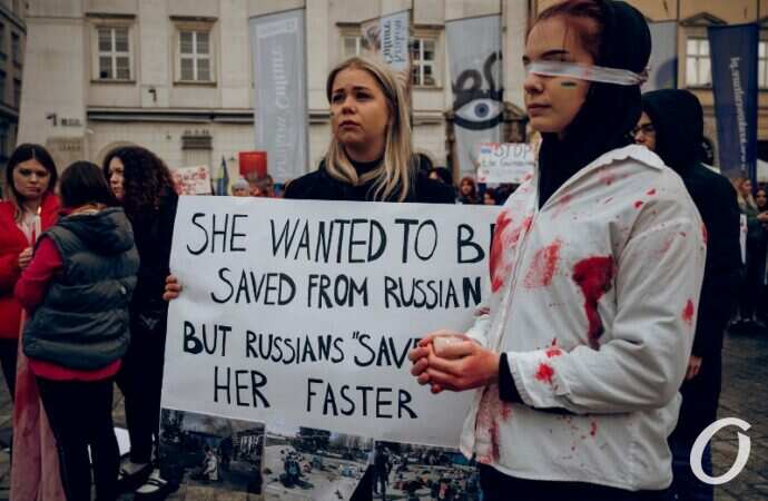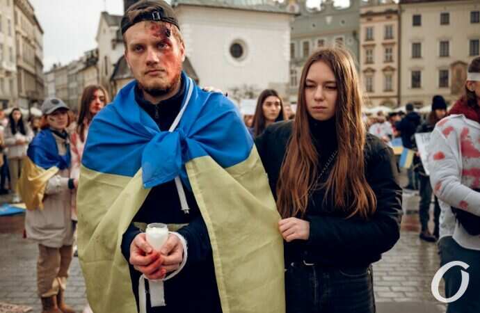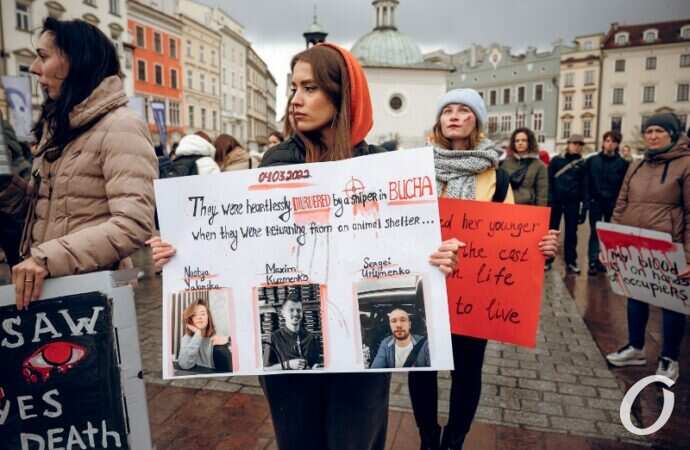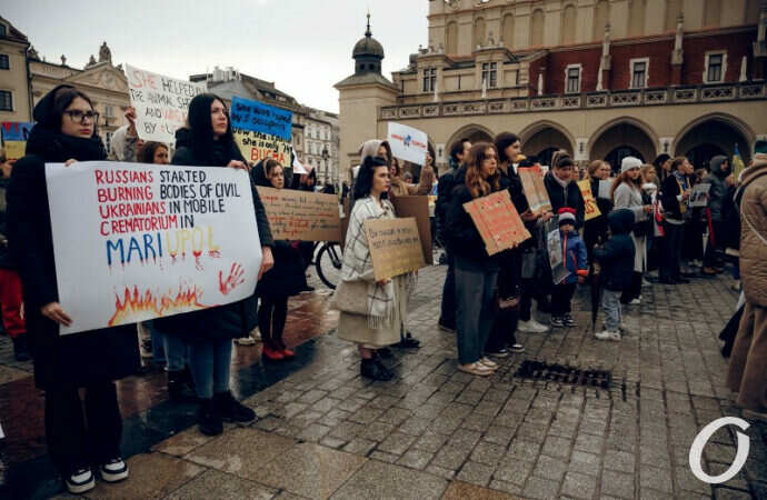 А зовсім поряд на краківських вулицях вирує життя. Таке ж життя, яким жили українці ще два місяці тому – прогулянки центром, кава на виніс і радість від сонця, що вийшло з-за хмар. До речі, саме до початку акції «Кривавий геноцид» закінчився дощ і замерзлих учасників акції почало пригрівати сонце. І було в цьому щось обнадійливе.