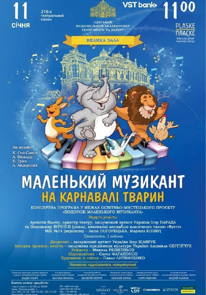 Фантастична музична подорож для маленьких та великих слухачів. Музика Карнавала тварин за мотивами Каміля Сен-Санса, у виконанні оркестру Одеської національної опери, обіцяє справжнє свято для усіх!