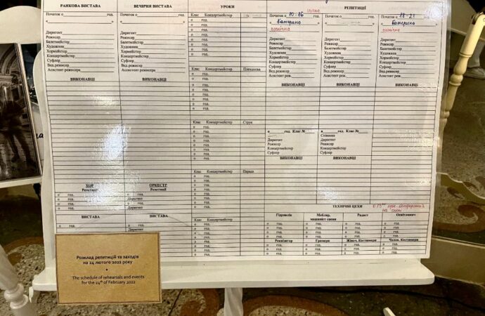 Багато матеріалів присвячено першій прем’єрі воєнного часу – опері “Катерина”. Крім того, були змінені костюми, які завжди привертають найбільшу увагу глядачів. Раніше, тут було багато костюмів, яуі належали театральному училищу. Але сам театр є власником величезного гардеробу, якому зберігається біля 40 тисяч костюмів. Так, знайшли балетну пачку, виготовлену в 1983 році, модерні костюми до опер “Дідона та Еней” 2016 року, Дон Жуан, Трубадур та інших. Ця частина також буде ще оновлюватися.