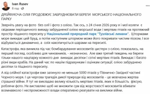Еколог Іван Русєв у своїх соціальних мережах порівняв фото без олії та з олією. Він додав, що з 24 січня 2026 року разом із колегами фіксую регулярні викиди забрудненої олією морської води й мертвих птахів на довгий піщаний пересип у Національному природному парку “Тузлівські лимани”.