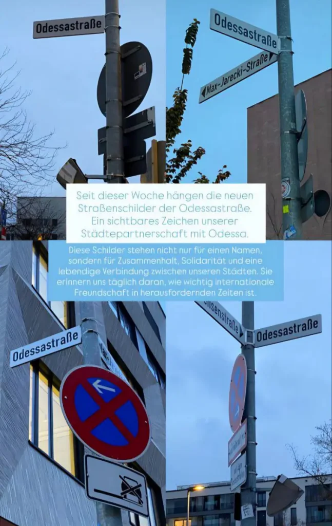 У місті-партнері Гейдельберзі (Німеччина) офіційно з'явилася вулиця на честь Одеси – Odessastraße. Назва вже встановлена на вказівниках одного з найвідоміших наукових центрів Німеччини.