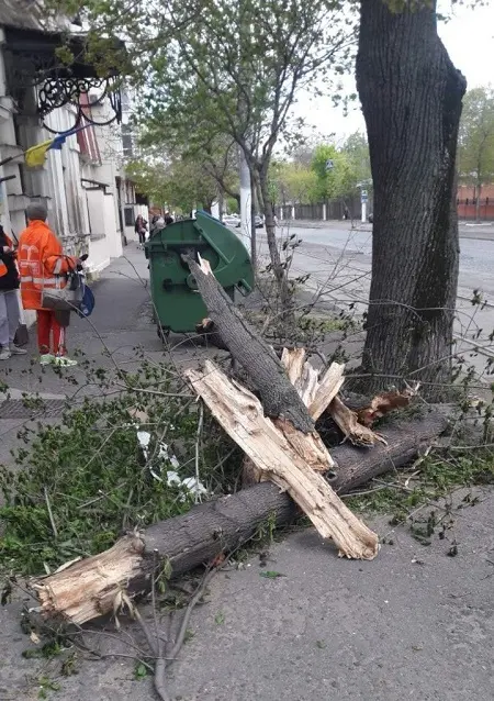 Негода продовжує випробовувати Одесу на міцність. Станом на вечір неділі, 26 квітня, штормовий вітер повалив у місті 37 дерев. Комунальні служби працюють в оперативному режимі, щоб розчистити вулиці.
