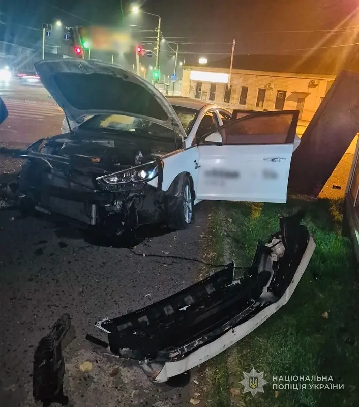 «Попередньо встановлено, що 26-річний водій автомобіля KIA, повертаючи ліворуч, не зайняв крайню ліву смугу та допустив зіткнення з автомобілем Hyundai під керуванням 32-річного чоловіка, який обганяв по крайній лівій смузі. Від удару Hyundai відкинуло в опору світлофора», – йдеться у повідомленні обласного управління поліції.