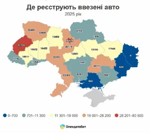 За даними МВС, у 2025 році до України імпортували 444 860 транспортних засобів. Це на 17% більше, ніж у 2024-му, але все ж на третину менше, ніж у 2021 році до повномасштабного вторгнення.