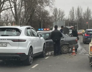 Варто зазначити, що один з автомобілів внаслідок ДТП опинився на коліях, через що трамваї були змушені призупинити рух.