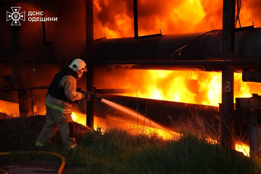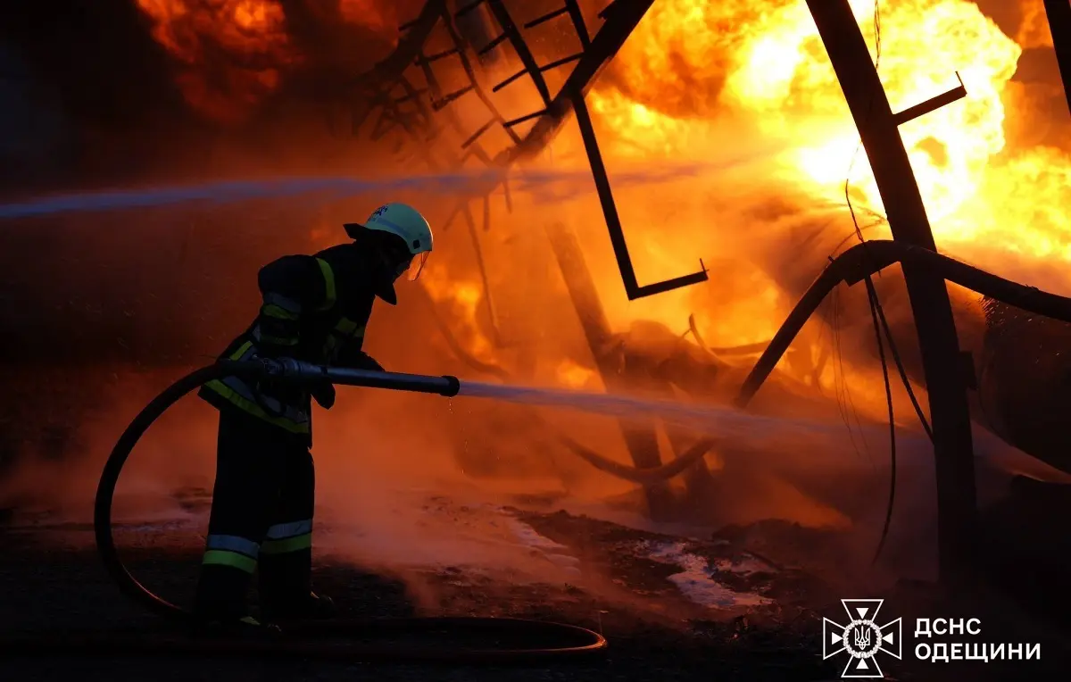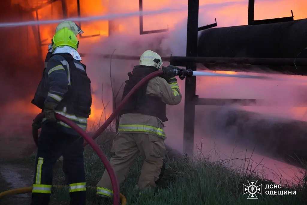 Одеські рятувальники показали, як гасили масштабну пожежу після нічної атаки (фото, відео)