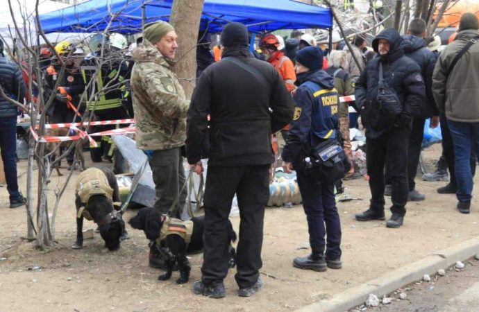 Це службовий собака Тара. Кане корсо (це порода собак – ред.), що рятує людей. Її господар Олесь Червоний допомагає рятувальникам наразі на уламках того будинку в Одесі, який розбив уночі російський шахед. Сьогодні Тара разом з іншими двома службовими собаками та рятувальниками виявила тіло загиблої дитини на цих розвалах. Лягла і плакала. Нехай усе зло повернеться окупантам.