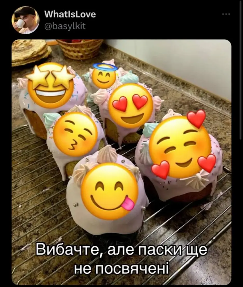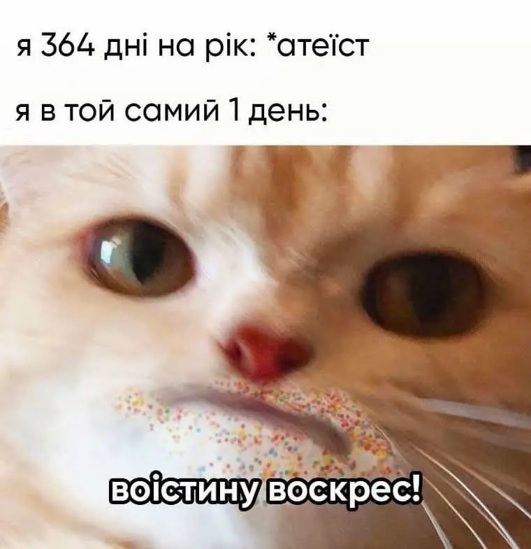 Доброго ранку, друзі! Сьогодні — останні приготування перед світлим святом Воскресіння Христового. Чи вже все готово? Вікна помиті, паски напечені, яйця пофарбовані? У цій приємній святковій метушні важливо не забути про головне — молитву та подяку Богові за Його любов і жертву. Нехай у кожному домі панують мир, тепло і добро, а в серцях — віра та надія. І, звісно, трішки гумору в ці непрості часи нам точно не завадить.