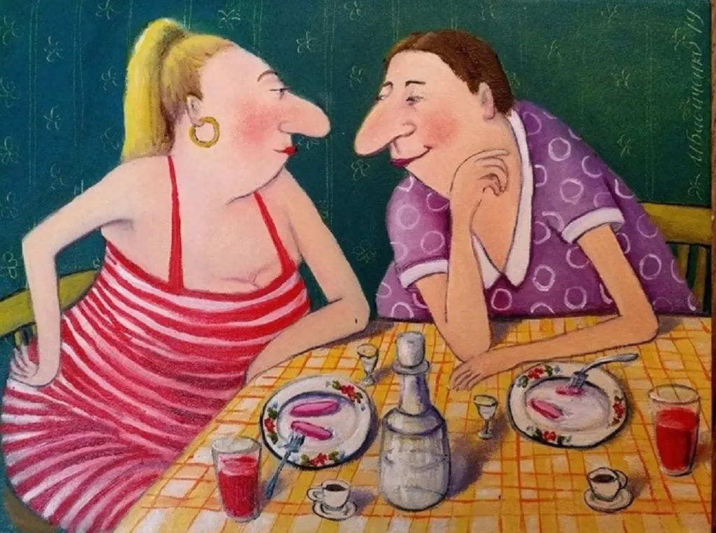 Сидячи за столом, обнявшись, дві подруги зізнавалися одна одній у любові та вічній дружбі. Обговорювали, як вони будуть виховувати своїх дітей і не дадуть їм зіпсувати своїх онуків.