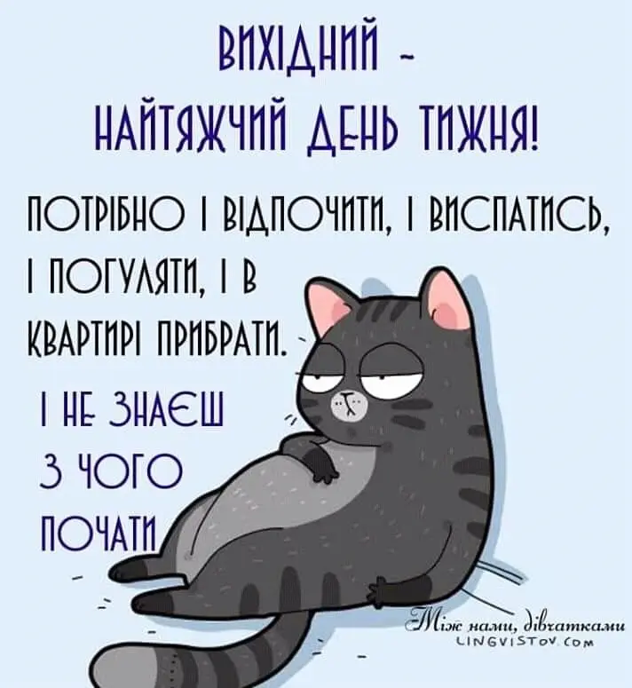 З доброю суботою, Одесо! Ранок вихідного – рідкісний момент, коли будильник мовчить, а совість не поспішає прокидатися. А щоб день почався правильно, ловіть нову порцію гумору.