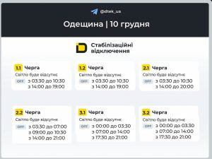 Після чергової масштабної атаки російських військ на енергетичні об’єкти по всій країні продовжуються стабілізаційні відключення електроенергії. За інформацією компанії «Укренерго», 10 грудня 2025 року відбулося оновлення графіків.