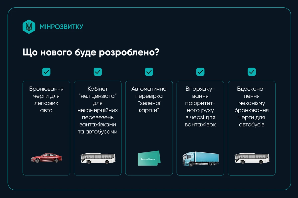 Одним із ключових нововведень стане можливість бронювання місця в електронній черзі для легкових автомобілів.