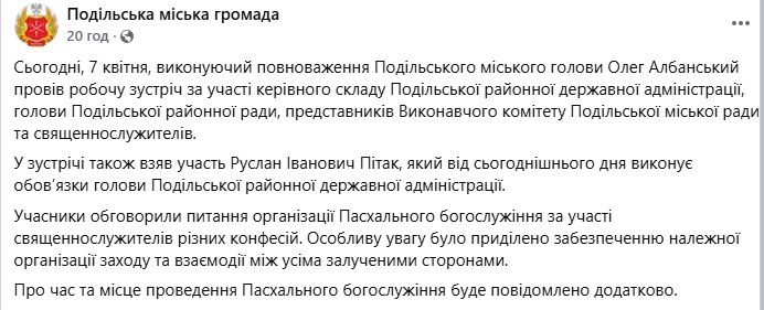 З 7 квітня обов’язки голови Подільської районної державної адміністрації в Одеській області виконує Руслан Пітак. Раніше він обіймав посаду першого заступника голови Одеської районної державної адміністрації. До слова, у 2018-му, президент Петро Порошенко перевів його з Татарбунарської РДА до Подільська. У 2020 році президент Володимир Зеленський звільнив Пітака з посади голови Подільської РДА.