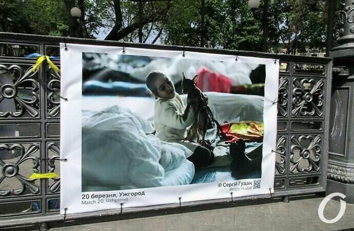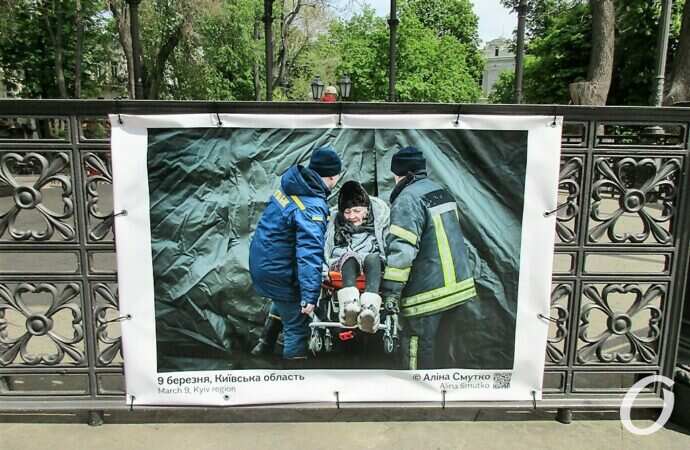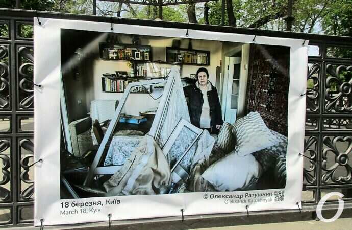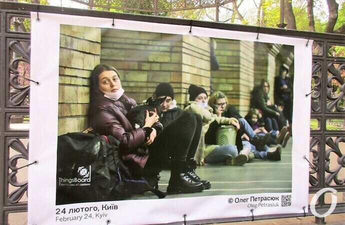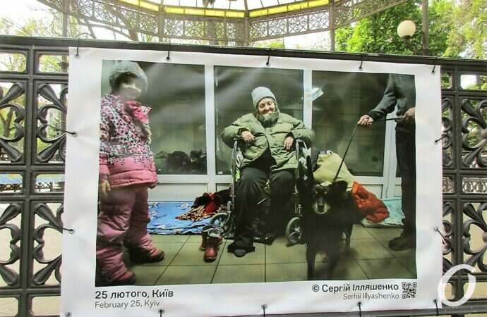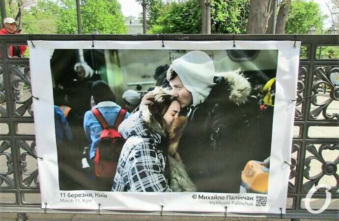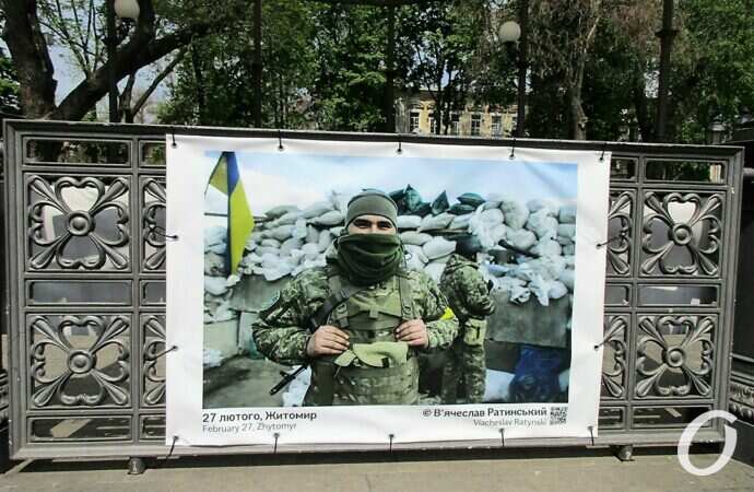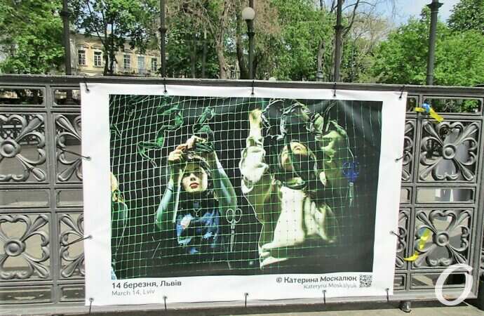 Відразу хочу зазначити: з фотовиставкою військової фотографії можна ознайомитись не лише у Міськсаду. Тут лише частина представленої експозиції. З іншими фотографіями можна познайомитись у парку ім. Т.Г.Шевченка, на Строгановському мості; фото можна побачити на огорожі Одеського заводу Шампанських вин, Державного архіву Одеської області по вул. Жуковського.