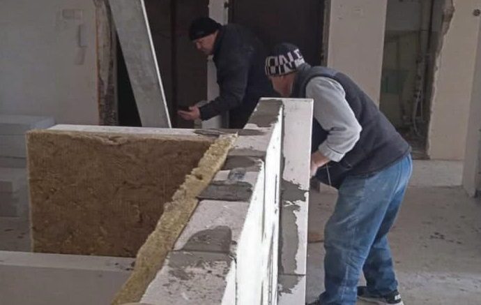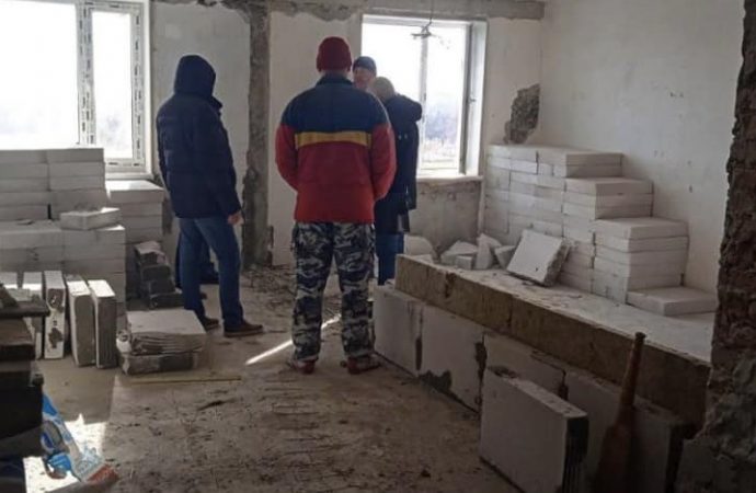 На цьому етапі завезено будматеріал, демонтовано пошкоджені конструкції, підготовлено все необхідне для відновлення. Наразі будівельники виконують електромонтажні роботи, кладку цегляних стін і перестінків.