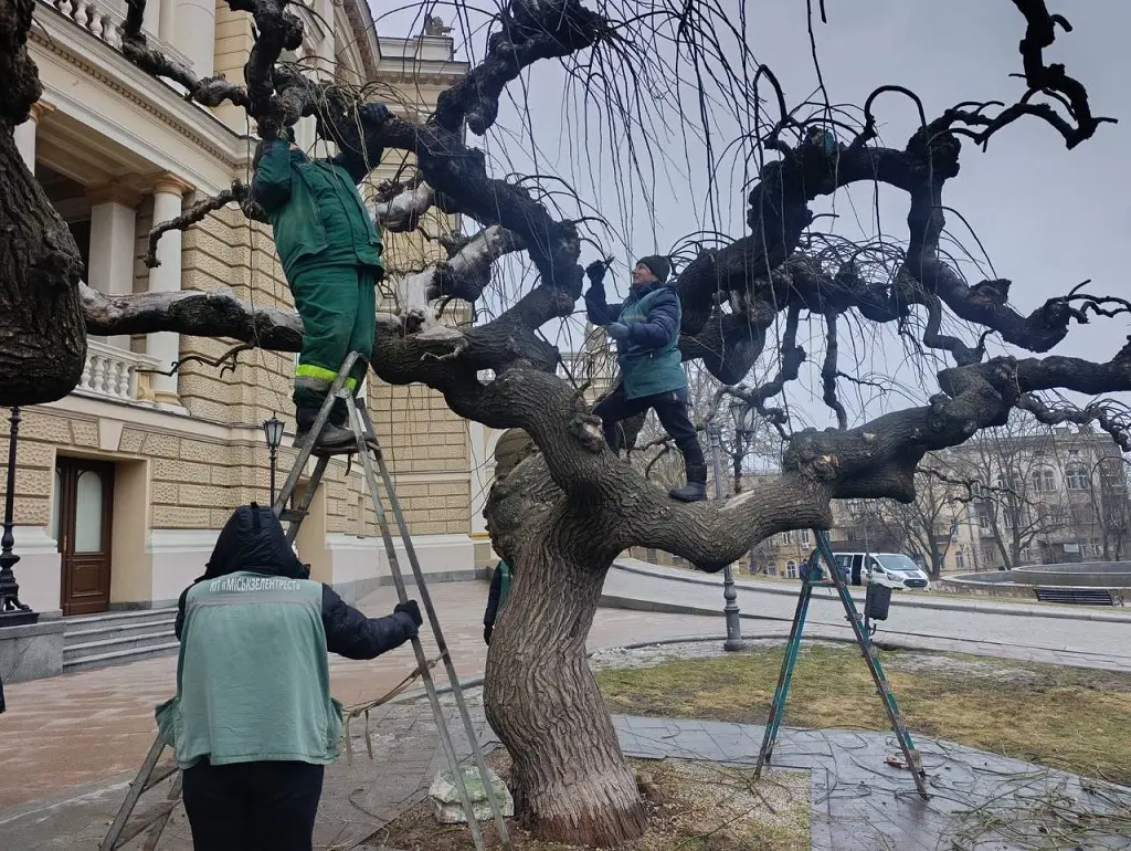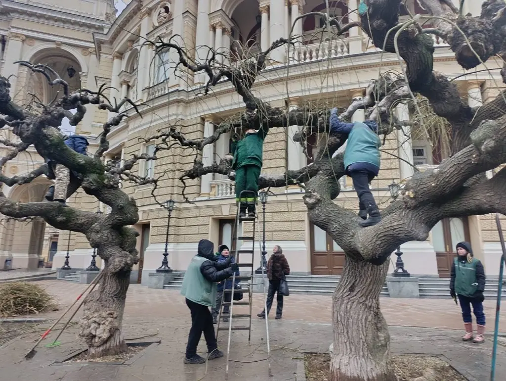 В Одесі стартували традиційні сезонні роботи з омолодження та формування крон дерев плакучої форми. У центрі уваги – знамениті софори біля Оперного театру, вік яких цього року перевищить 130 років.