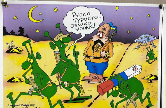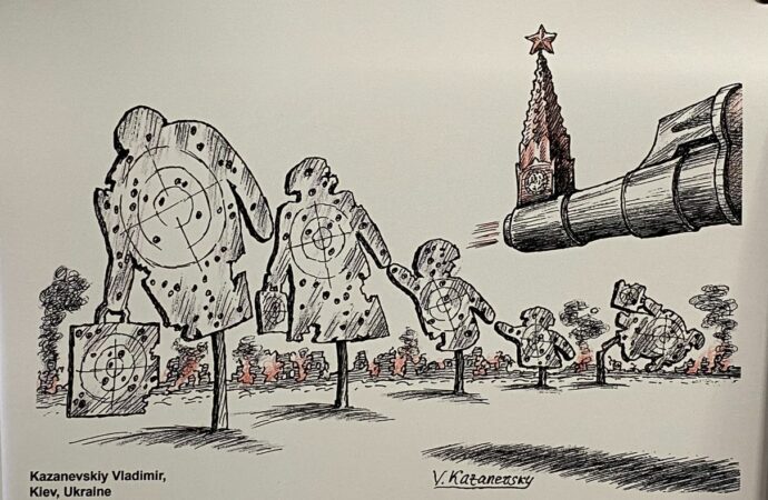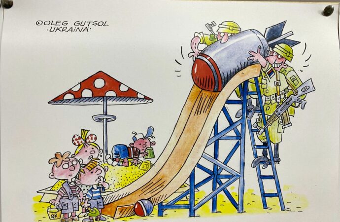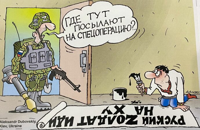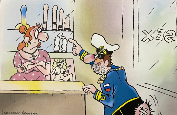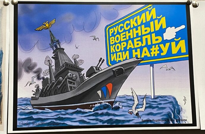 … І сміх, і сльози, і кохання. Два місяці всі ці емоції б’ють через край. Ми плачемо над загиблими, сміємося над ворогом і продовжуємо любити нашу країну ще сильніше, ніж раніше. На жаль, війну не зупинити за допомогою гумору та сміху, але можна наблизити хоча б на мить її закінчення, додавши бойового духу і бійцям і тим, хто зараз забезпечує тил. Саме тому ротарі-клуб “Одеса-Рішельє” спільно зі Всесвітнім клубом одеситів, Клубом одеських карикатуристів та Гільдією власкорів Одеси оголосили конкурс карикатур на тему “Російський військовий корабель, йди нах@й”, участь у якому взяли художники з усього світу.