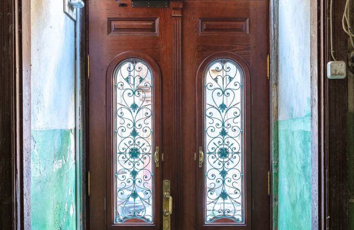 До 2020 року ці колись красиві різьблені двері просіли і занепали, дерево під шарами фарби обсипалося в потерть, було втрачено частину різьблених дерев’яних елементів і лівосторонні ковані ґрати, зникли шибки фрамуги і стулок. У такому стані мало хто міг розглянути красу дверей та загальну картину фасаду.