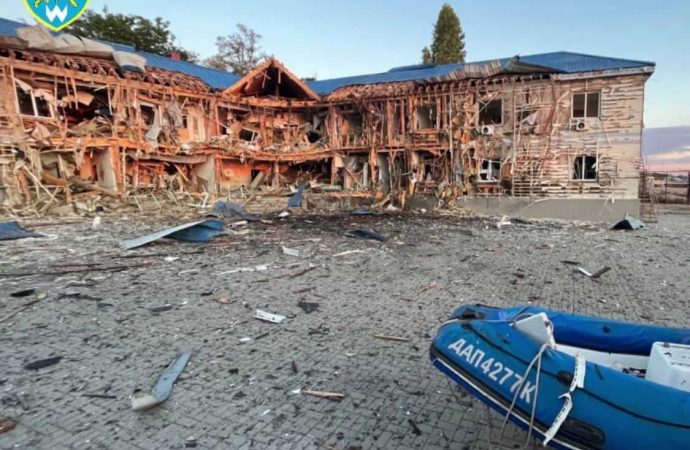Уламки одного із збитих дронів впали на яхт-клуб Одеси, де зруйновано будівлі школи парусного спорту та ангар зберігання майна, пошкоджено цивільні приватні катери та яхти. Люди не постраждали.
