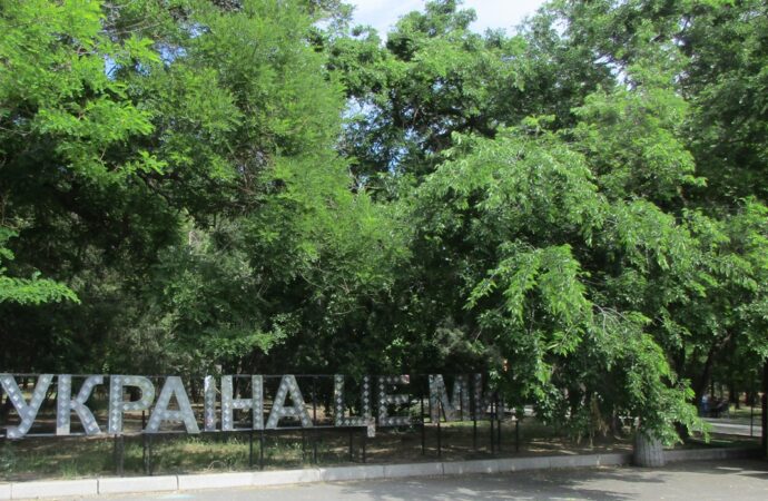 Ми проходимо тихими алеями старого парку — і війна одразу нагадує про себе: тут заборонено фотографувати, тут — огороджувальні стрічки. Народ, який живе поряд і часто буває у парку, все це вже знає. Іншим доводиться пояснювати.