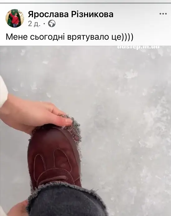 Як виявилося, цей старий «бабусин» метод став одним із найбільш обговорюваних у мережі. Але тут є нюанс: досвідчені користувачі попереджають, що звичайні тонкі шкарпетки (на кшталт «житомирських») не врятують – потрібні лише грубі вовняні, які створюють необхідне тертя. А гладкий трикотаж лише додасть екстриму на льоду.