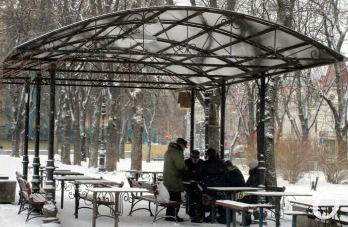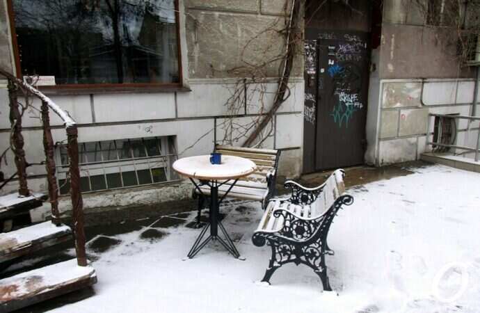Ну а вуличні столики-сидіння одеських кафешок — порожні та теж засніжені — наче нагадують, що сніг в Одесі не буває надовго.