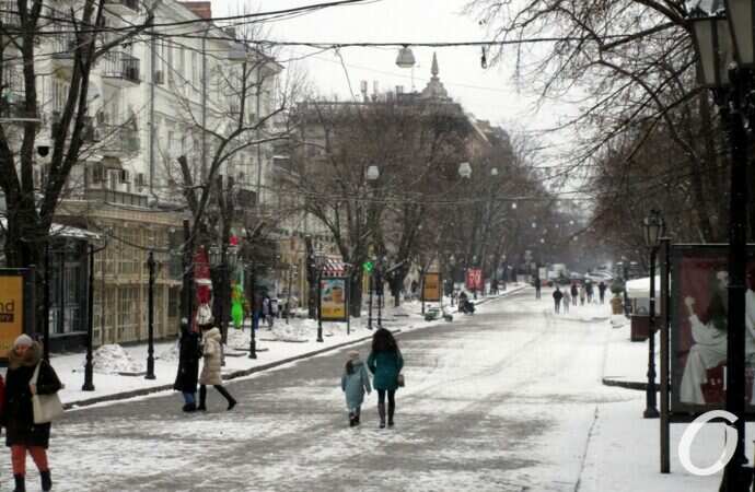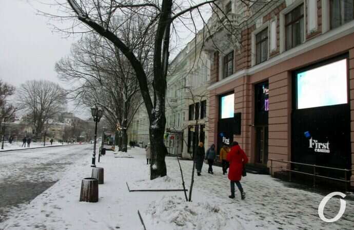 Народ неквапливо ходить Дерибасівською, Грецькою та Соборною площами, дихає повітрям, поглядає на лавки, на які не сядеш через той самий сніг.