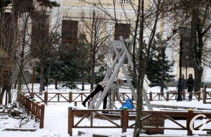 - Одеський сквер на Великому Фонтані: зимова казка із обезголовленим драконом (фоторепортаж)