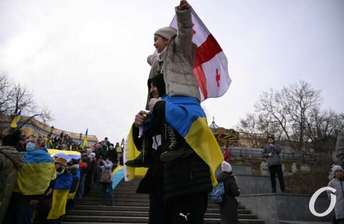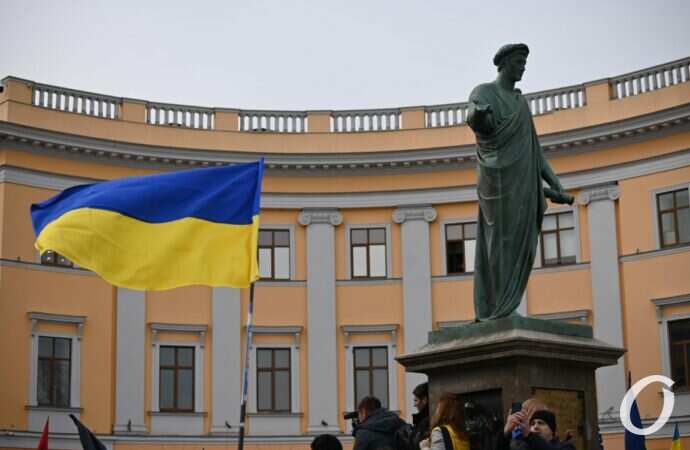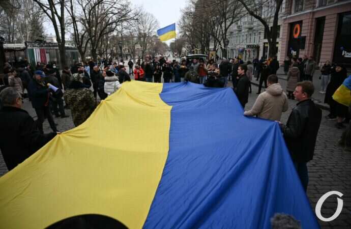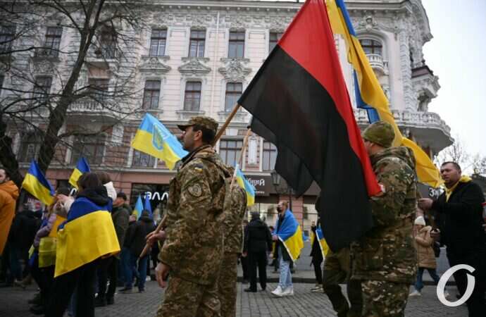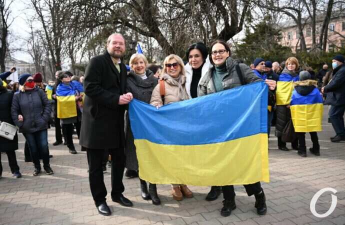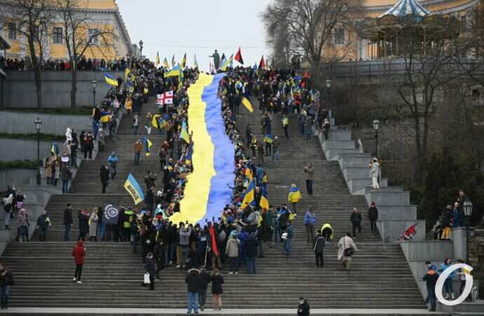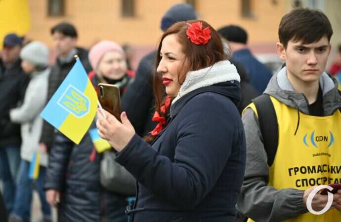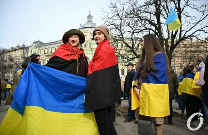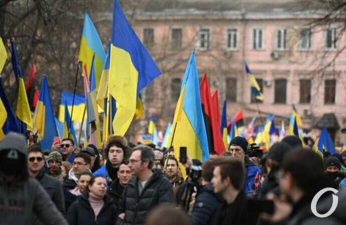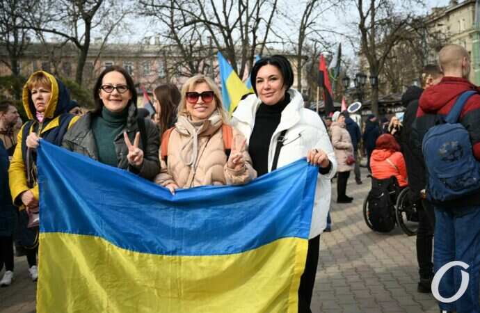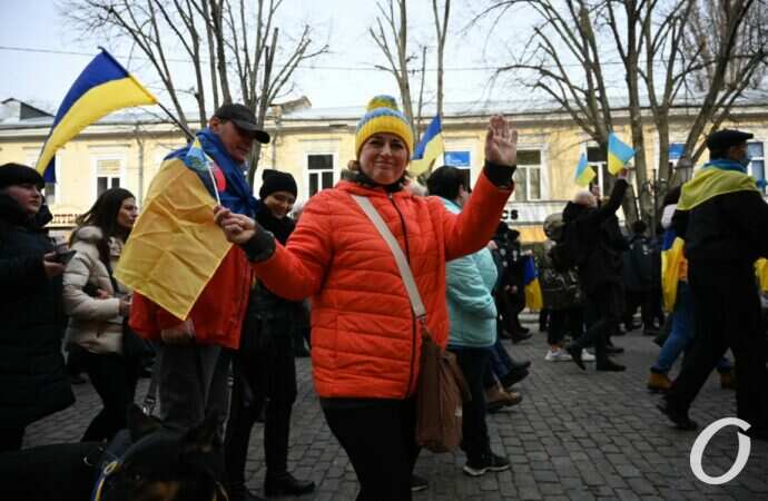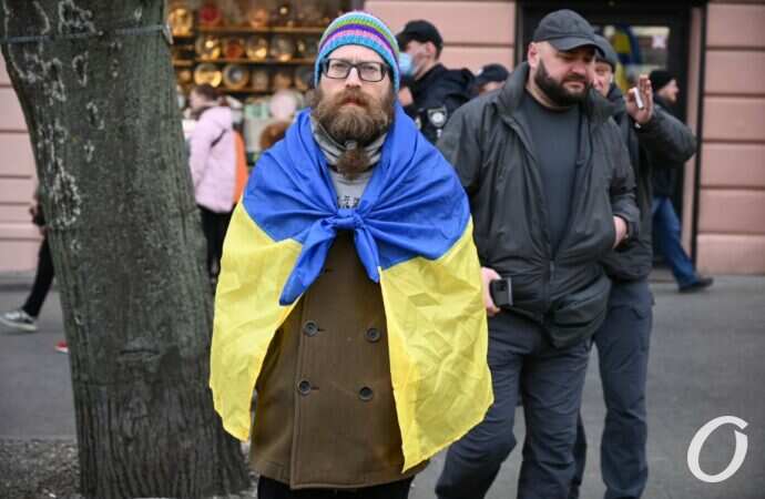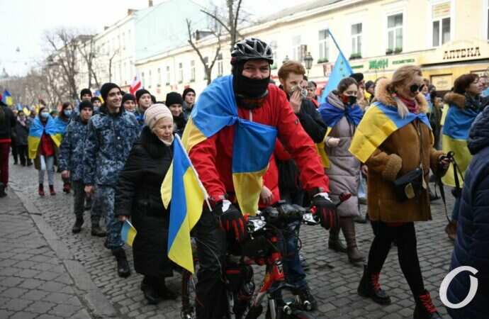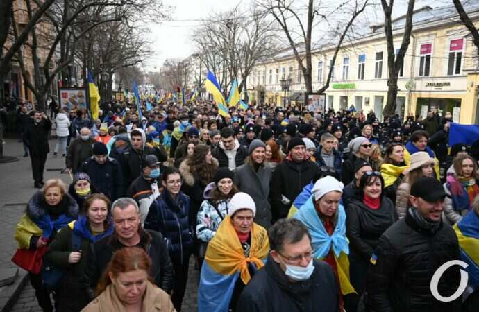 Це другий марш в Одесі цього тижня. У середу, 16 лютого, вулицями міста пройшла хода у зв’язку з Днем єдності, оголошеним президентом Зеленським. Але якщо ця хода була ініційована «зверху», то сьогоднішній марш цілком і повністю організували прості одесити. І на нього без жодних вказівок людей прийшло не менше, ніж на «президентський».