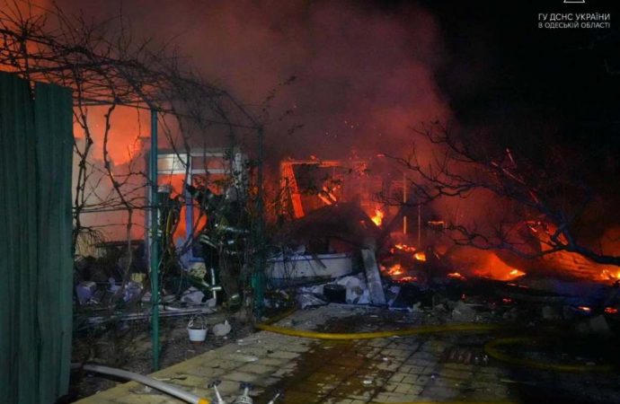 Але один із збитих безпілотників впав у житловий квартал в Одеському районі і вибухнув. Були пошкоджені та спалахнули житлові будинки та склад приватної спортивної установи.